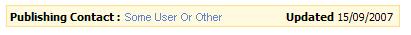 Whilst we’re at it, the client also points out that he doesn’t like the wording of the label, the layout needs amending, and the Publishing Contact field should actually be a ‘Last Modified By’ field. In keeping with Publishing Contact, the displayed name should provide a hyperlink to the user information page. Time to get working then!